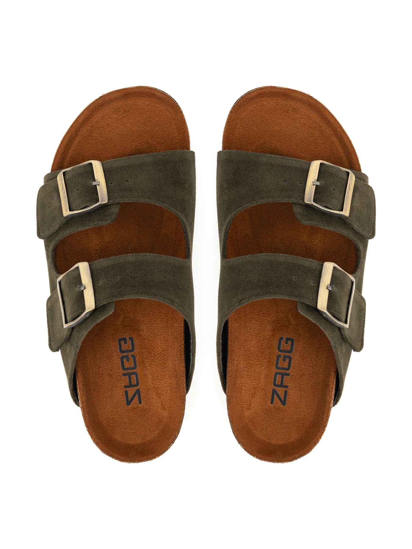 Designed for effortless everyday wear, these women’s double strap slides blend timeless design with all-day comfort. Finished in a rich olive green suede-look upper, they feature adjustable metal buckles that provide a secure, customized fit while adding a modern, earthy touch to the classic silhouette.