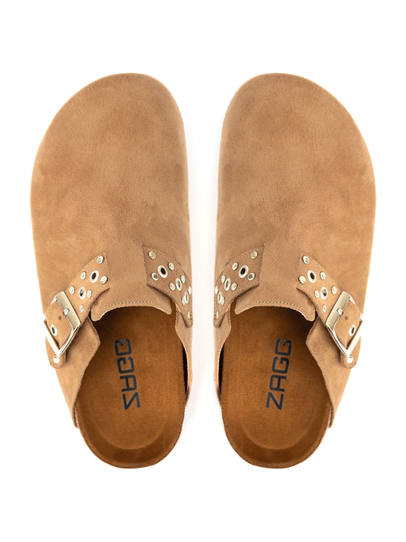 The Beige Classic Studs combine bold style with ultimate comfort. Featuring edgy metal studs along the sides, these clogs make a statement while offering a secure, supportive fit. The sleek beige finish adds a modern, versatile touch, perfect for elevating both casual and dressed-up looks. Designed with a cushioned footbed and sturdy, slip-resistant sole, these clogs provide all-day comfort and stability. Whether you're looking to add some flair to your wardrobe or need a reliable, stylish shoe, the Black Studded Clogs are a must-have addition.